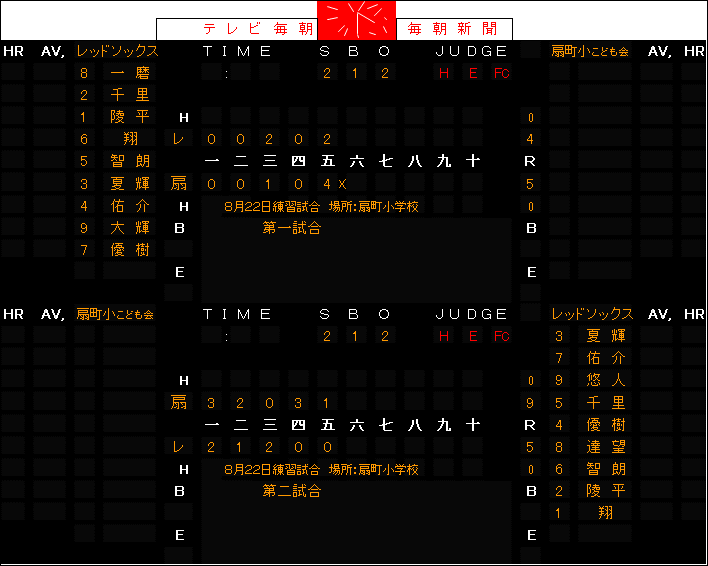 8月22日(日) 練習試合(対扇町小 in扇町小学校)