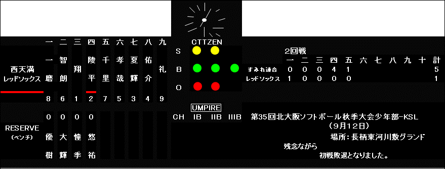 9月12日(日) 第35回北大阪ソフトボール 秋季大会 少年部-KSL