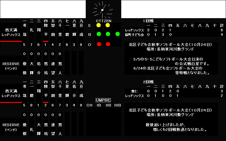 10月16日(日) 練習試合結果(対堀川小 in西天満小学校)
