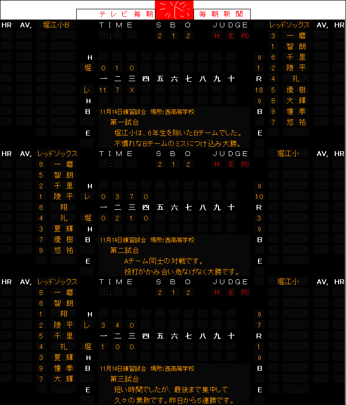 11月14日(日)練習試合結果(対堀江小 in西高校)
