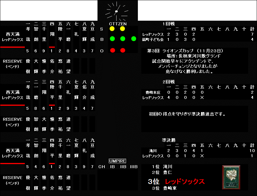 11月23日(祝)第3回ライオンズカップ 祝 第3位 |