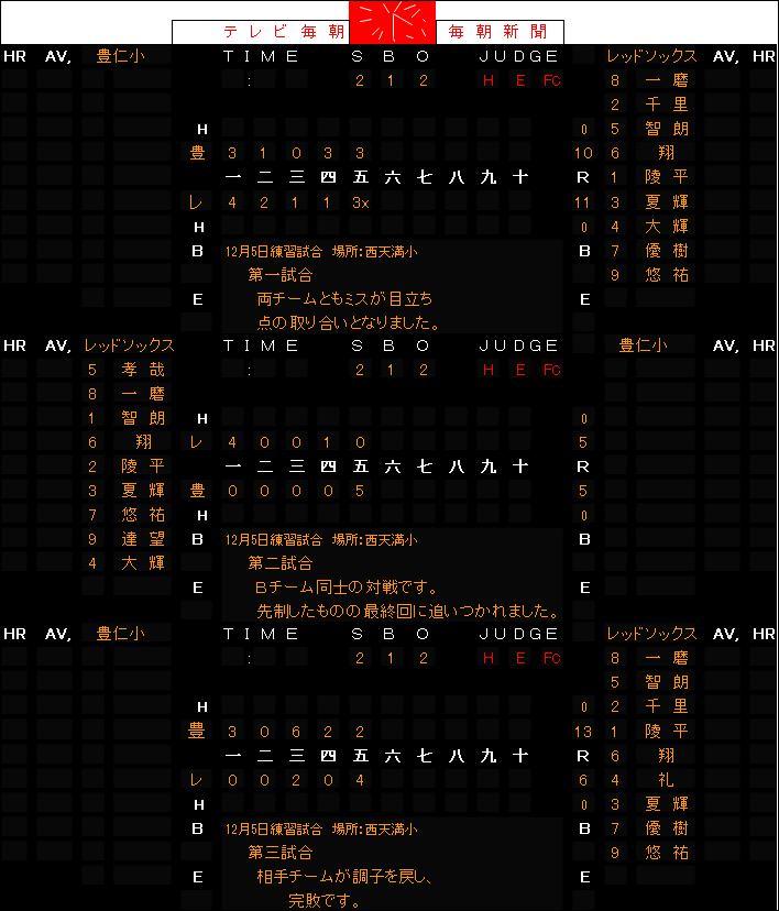 12月5日(日)練習試合結果(対豊仁小 in西天満小)
