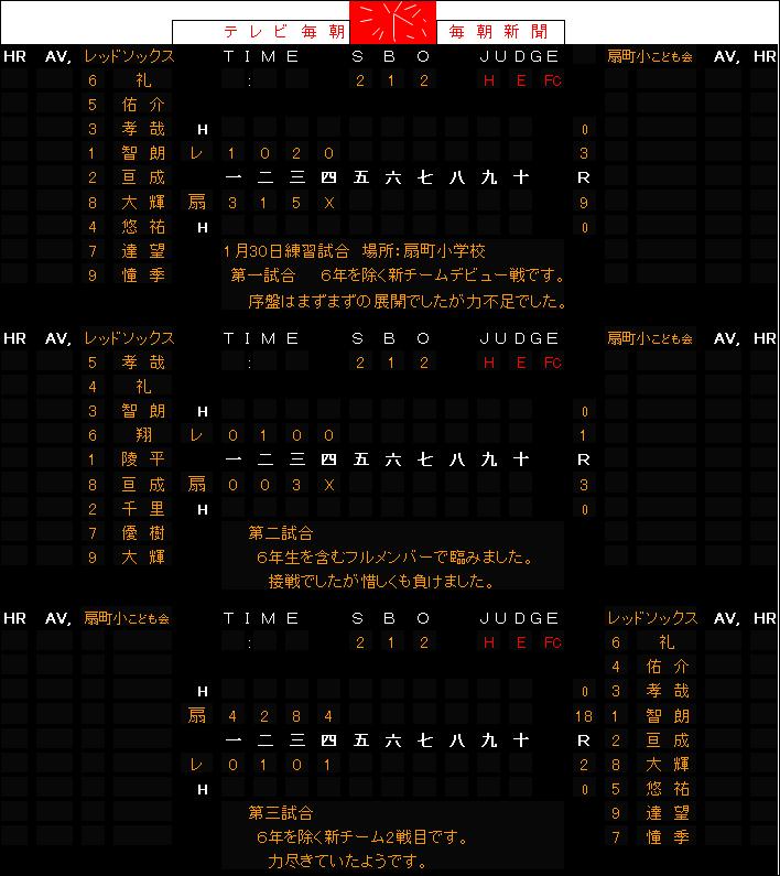 1月30日(日)練習試合結果(対扇町小 in扇町小)