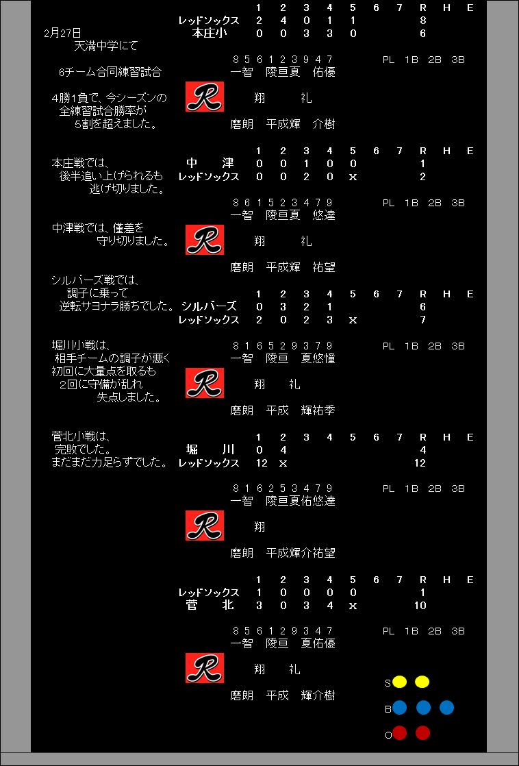 2月27日(日)練習試合結果(6チーム合同 in天満中)