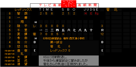 6月6日(日) 練習試合(対菅北小 in西天満小学校)